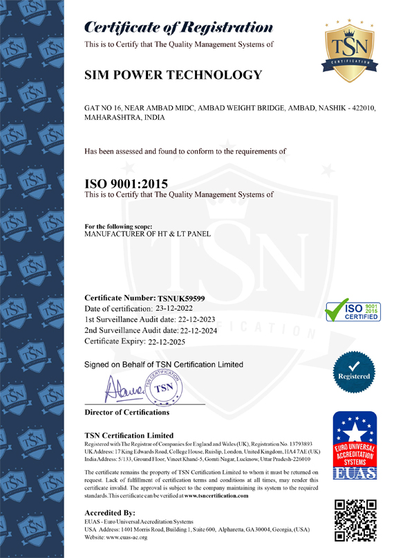 Since our establishment, we SIM POWER TECHNOLOGY have emerged as ISO 9001:2015 Quality management systems India